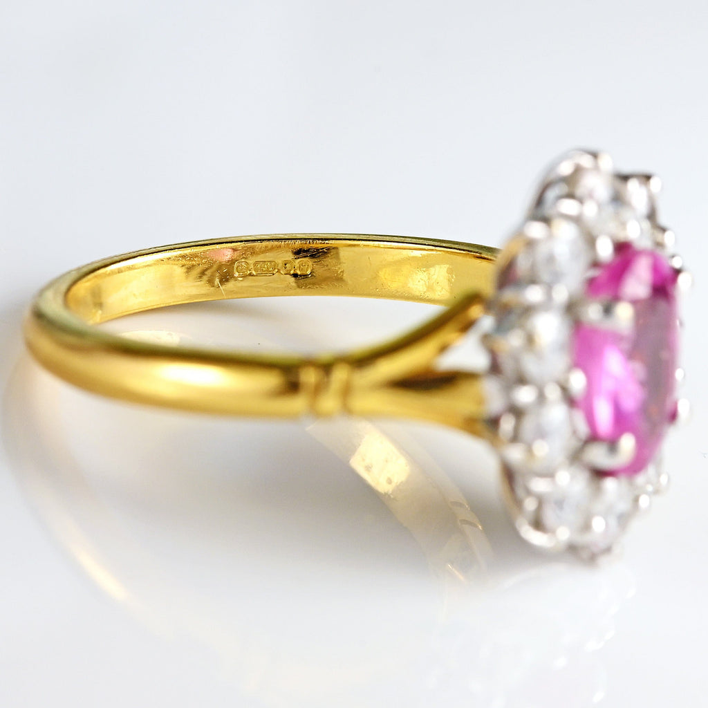 Pink Sapphire & Diamond 18ct Gold Cluster Engagement Ring (1.35cts)