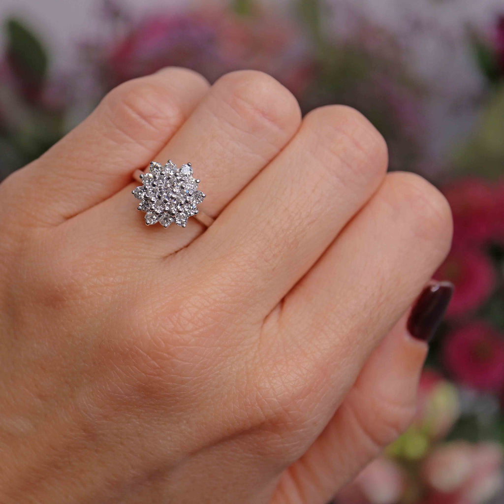 Vintage 1977 Diamond 18ct White Gold Cluster Ring (0.76cts)