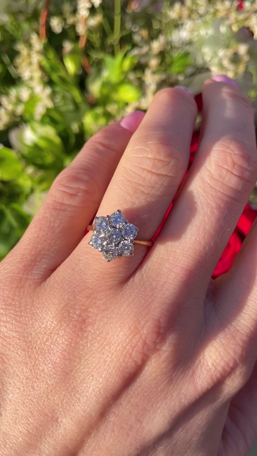Vintage 1978 Diamond 18ct Gold Daisy Cluster Ring (1.40cts)
