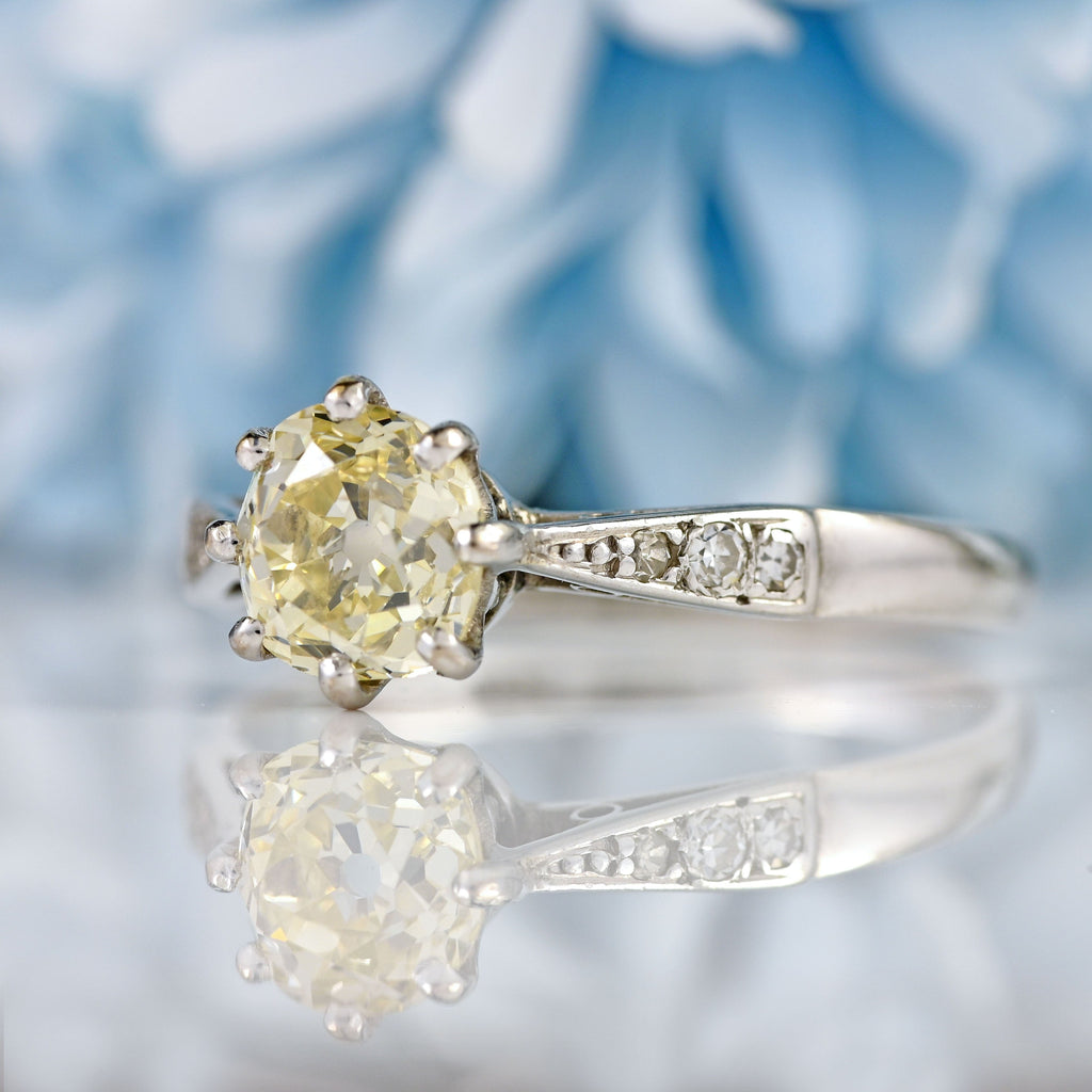Vintage Old-Mine-Cut Yellow Diamond Platinum Solitaire Engagement Ring (1.15cts)