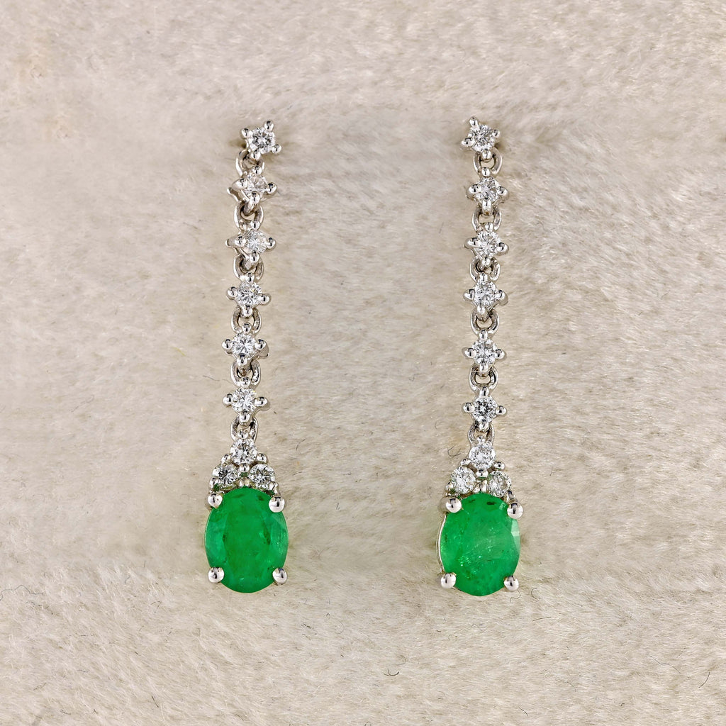 18ct White Gold Emerald & Diamond Drop Earrings