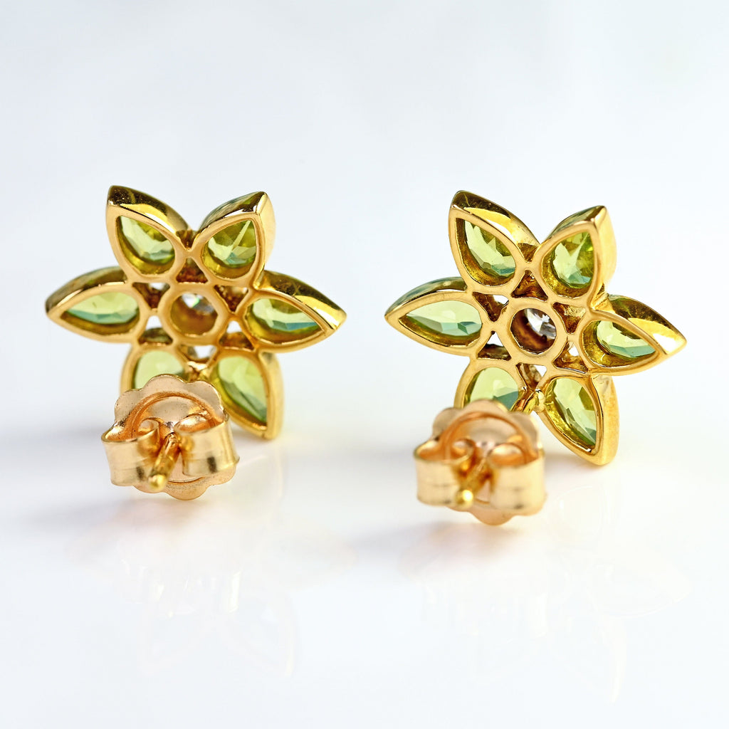 Peridot & Diamond 18ct Gold Flower Petal Stud Earrings