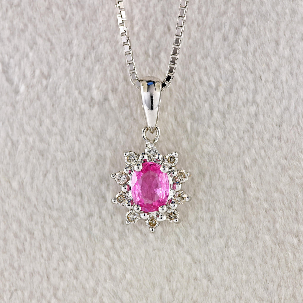 Delicate yet radiant, this exquisite pink sapphire and diamond pendant adds a touch of soft sophistication to any look.