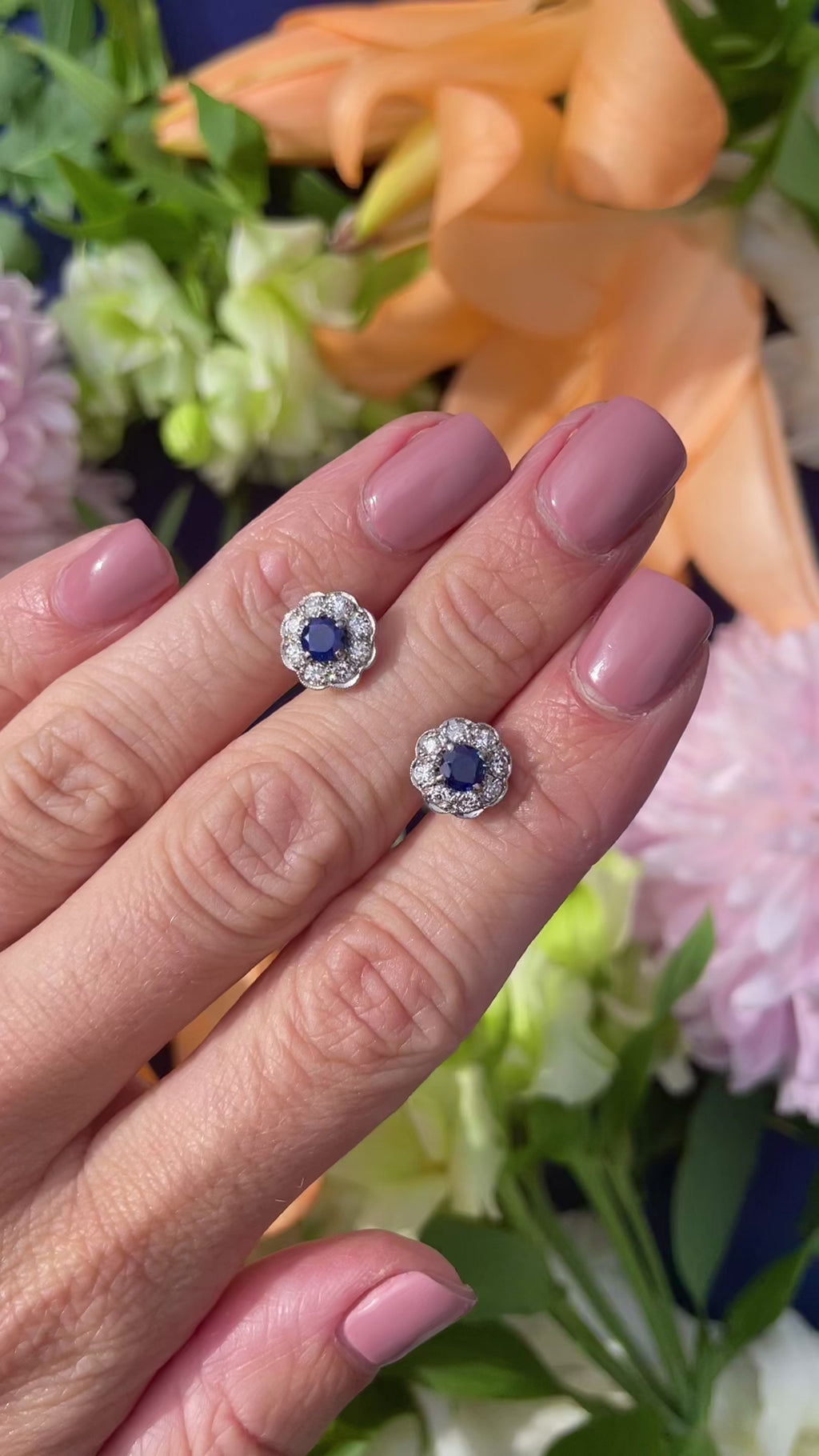 A timeless pair of sapphire and diamond cluster stud earrings, crafted in white gold.