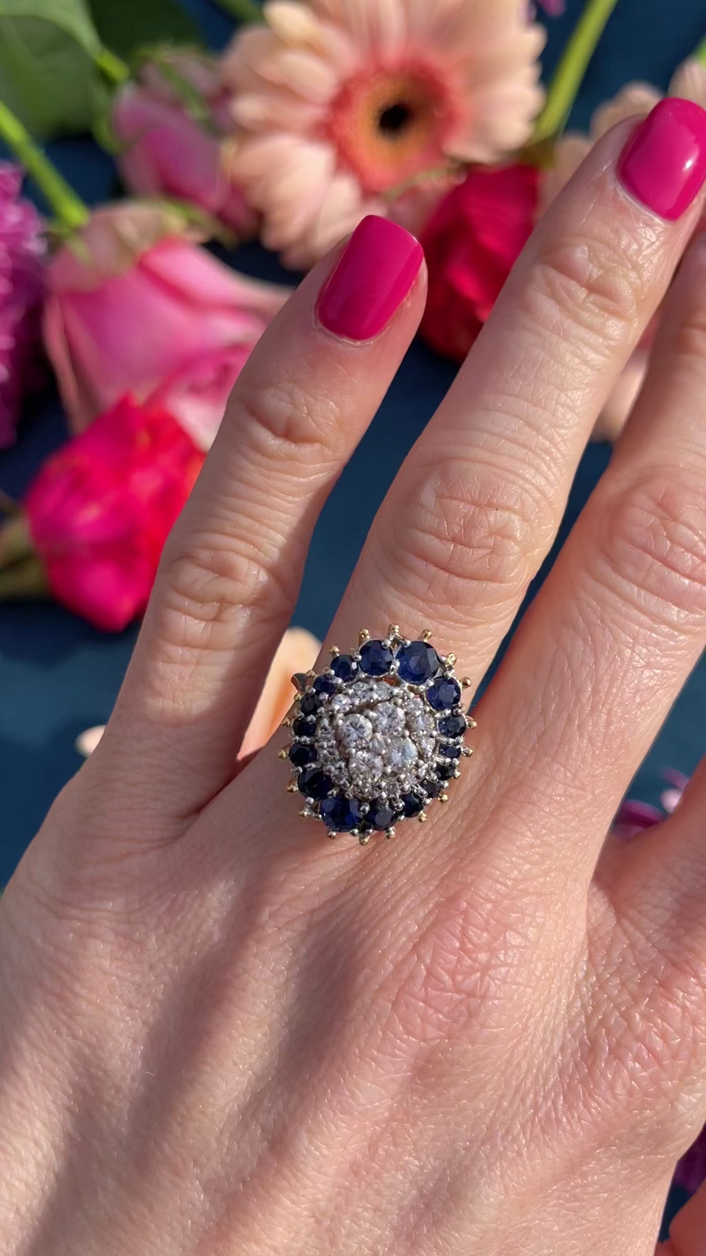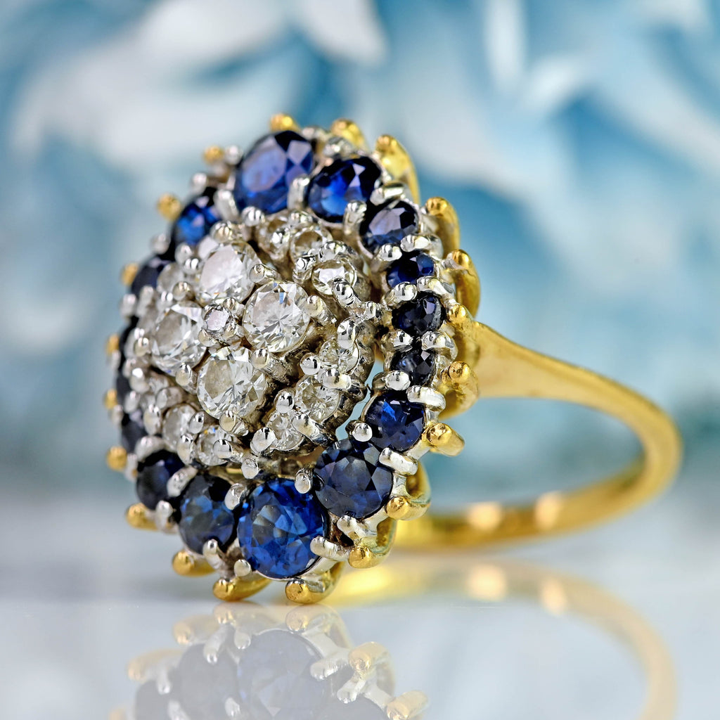 Vintage 1974 Sapphire & Diamond 18ct Gold Cluster Ring
