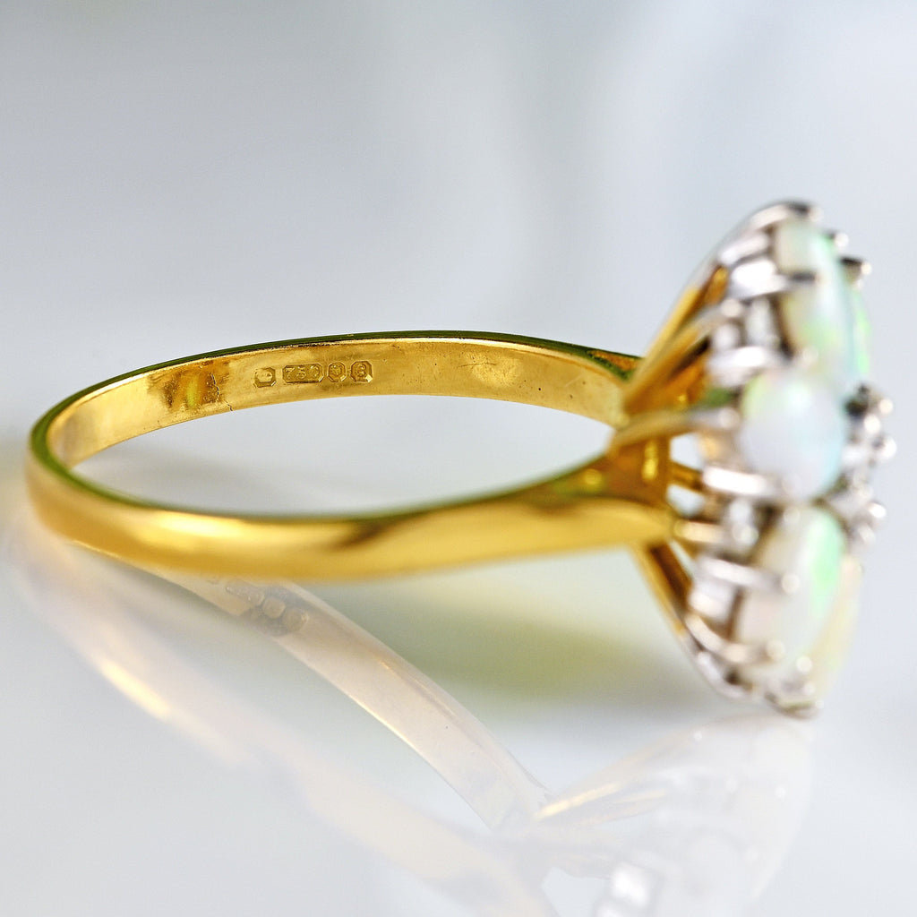 Vintage 1977 Opal & Diamond 18ct Gold Cluster Ring By Cropp & Farr