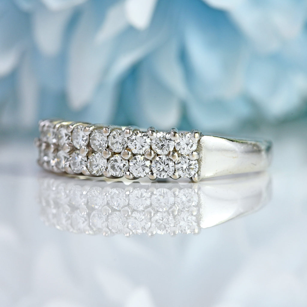 Vintage 1982 Diamond 18ct White Gold Double-Row Band Ring