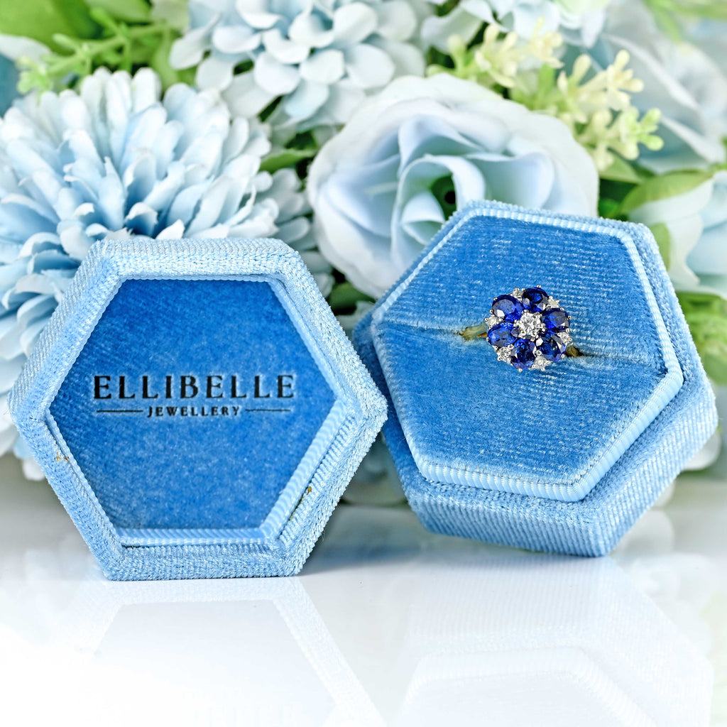 Vintage 1983 Sapphire & Diamond 18ct Gold Cluster Ring