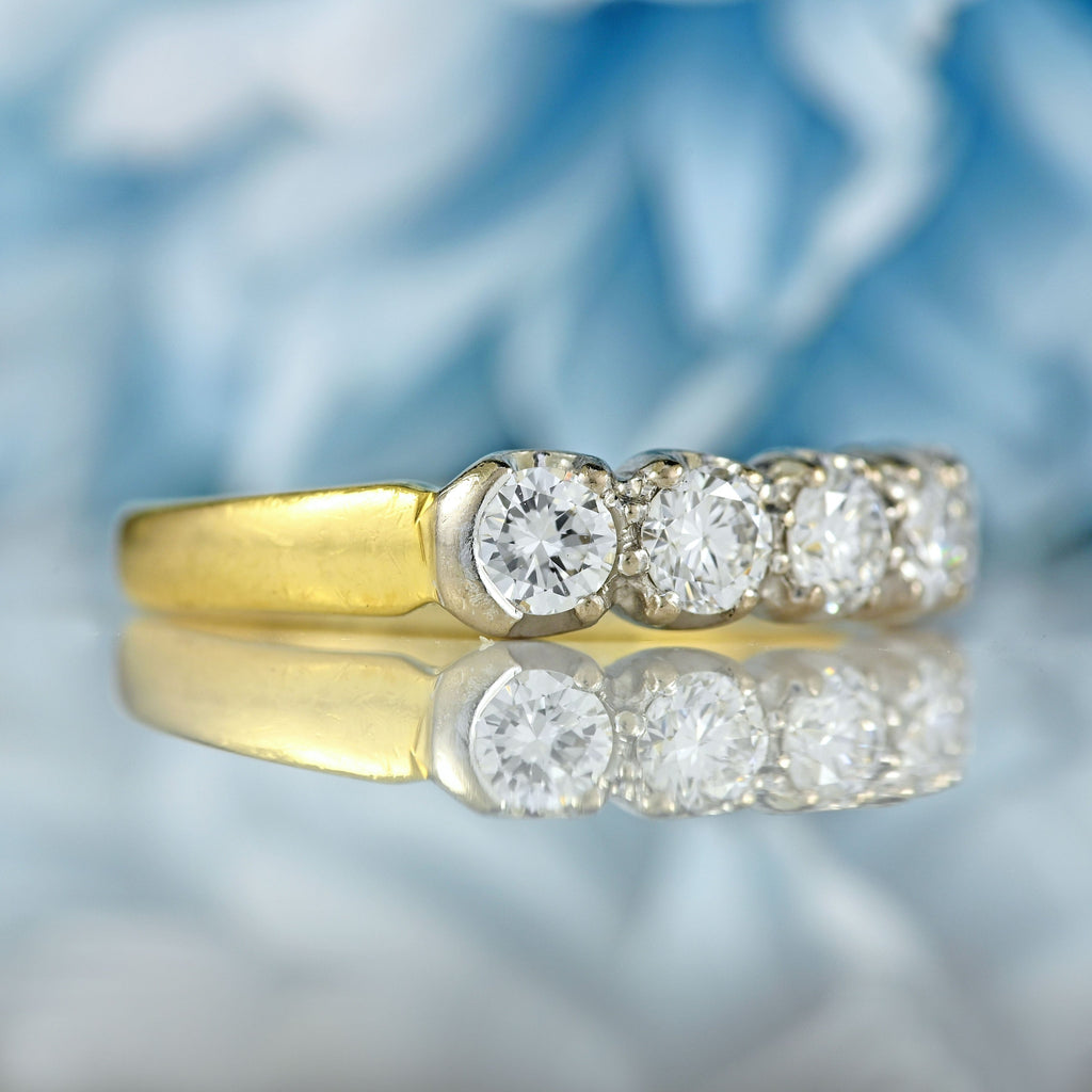 Vintage 1985 18ct Gold Diamond Five-Stone Half Eternity Band Ring (0.75cts)