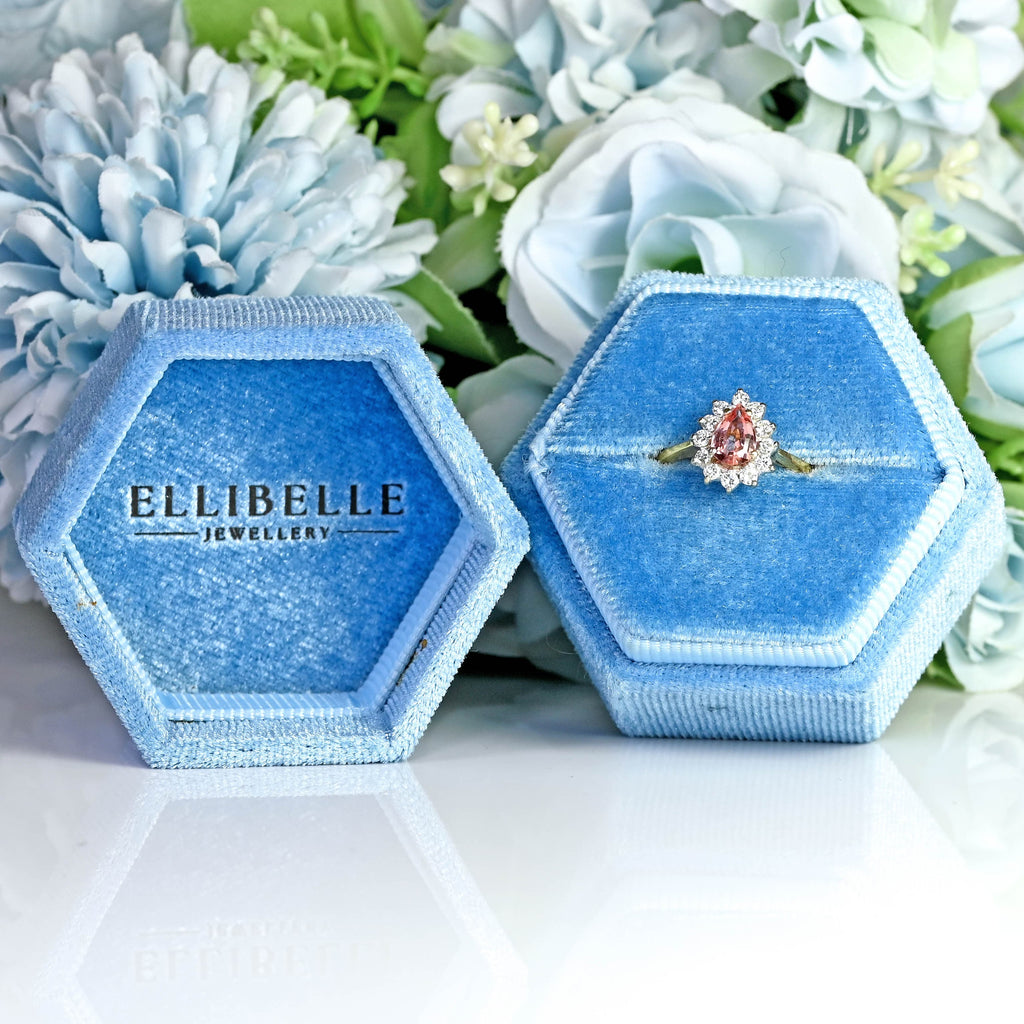 All jewellery bought through our website will come beautifully gift wrapped in a signature Ellibelle Jewellery velvet ring box together with a handwritten information booklet about your purchase and care guide and a free polishing cloth this will all come neatly presented in a branded matt black gift box with ribbon bow.