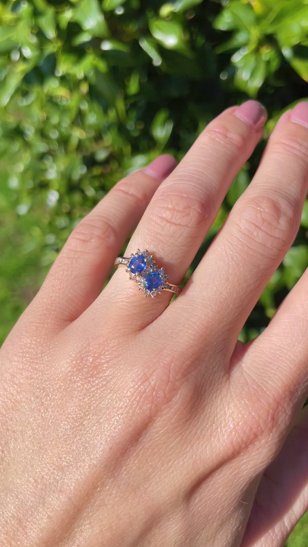 Vintage 1989 Ceylon Sapphire & Diamond 18ct Gold Double-Cluster Ring