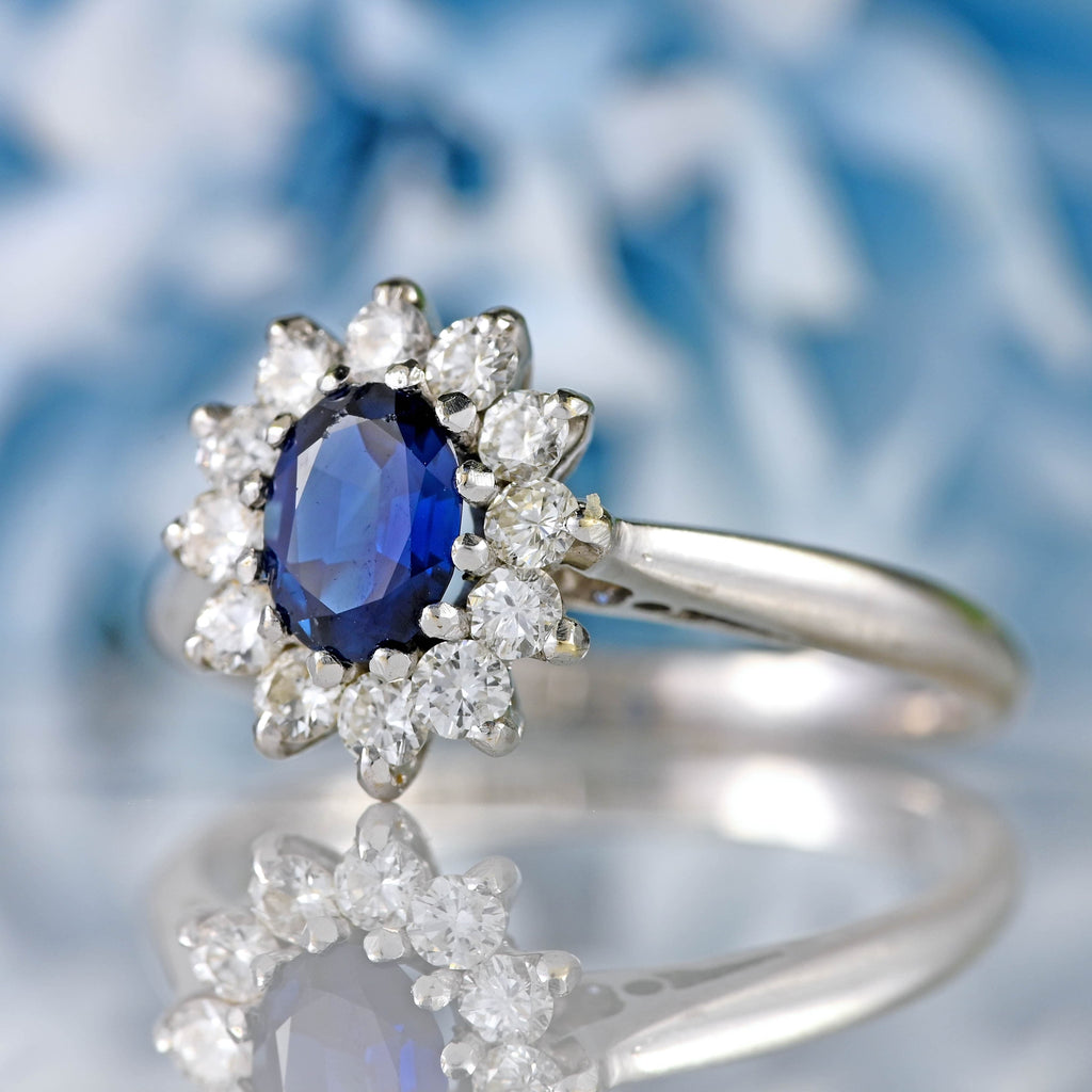 Vintage 1991 Sapphire & Diamond 18ct White Gold Cluster Ring