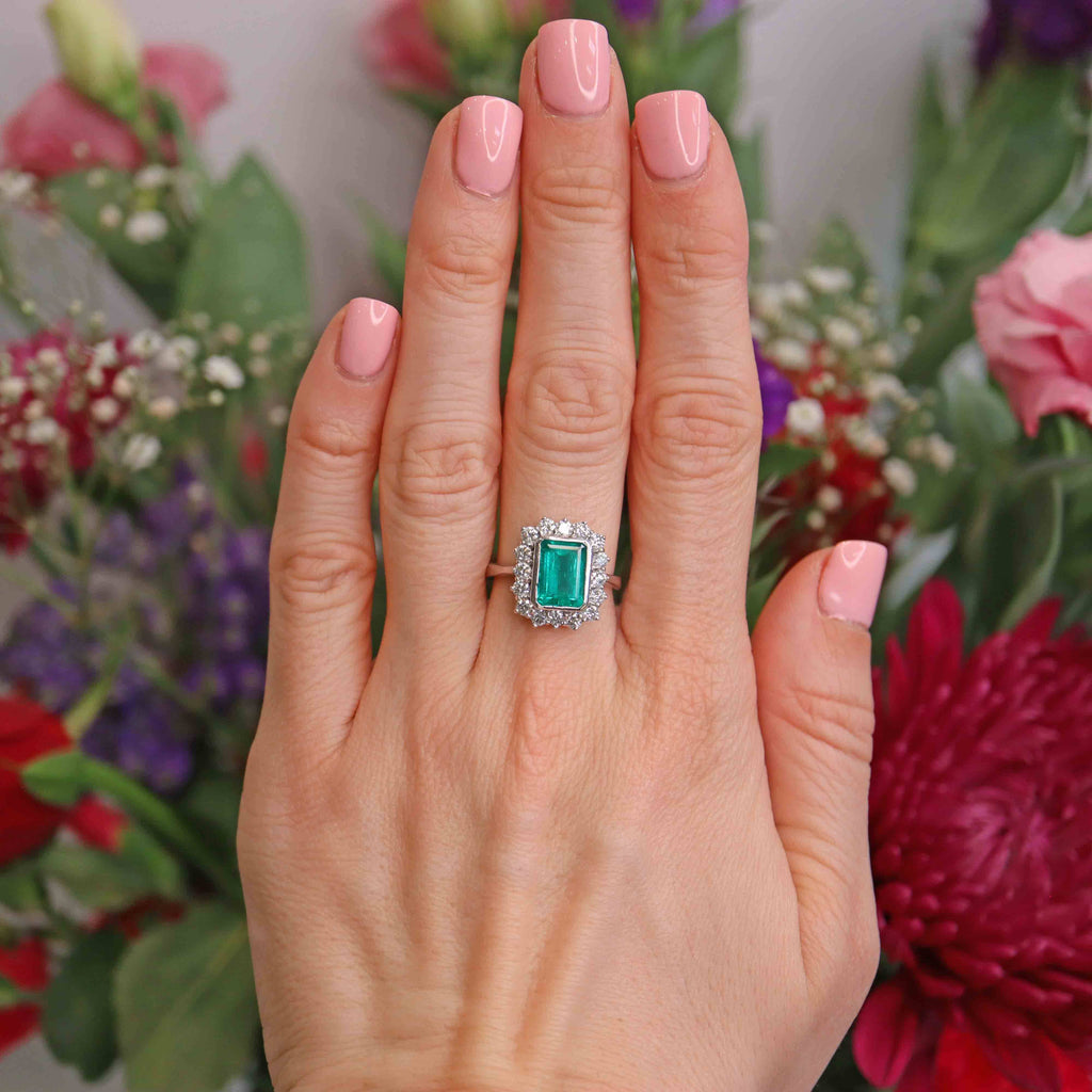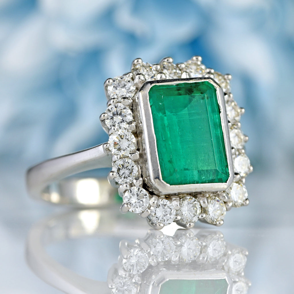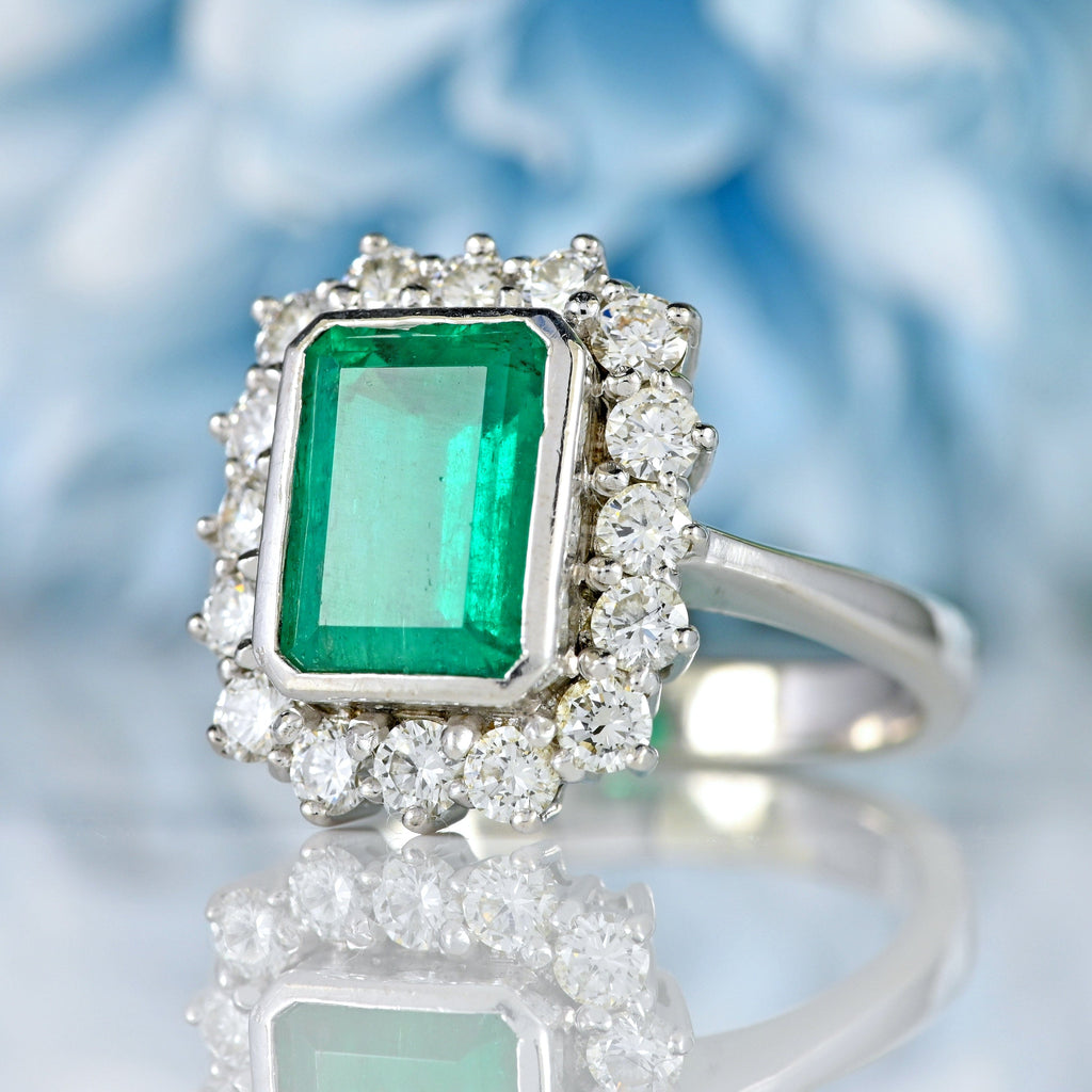 Vintage Emerald & Diamond 18ct White Gold Cluster Engagement Ring (2.75cts)