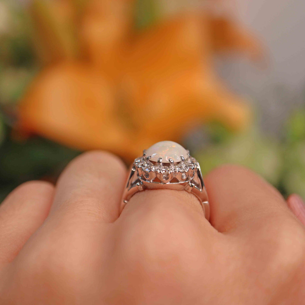 Vintage Opal & Diamond 18ct White Gold Oval Cluster Ring
