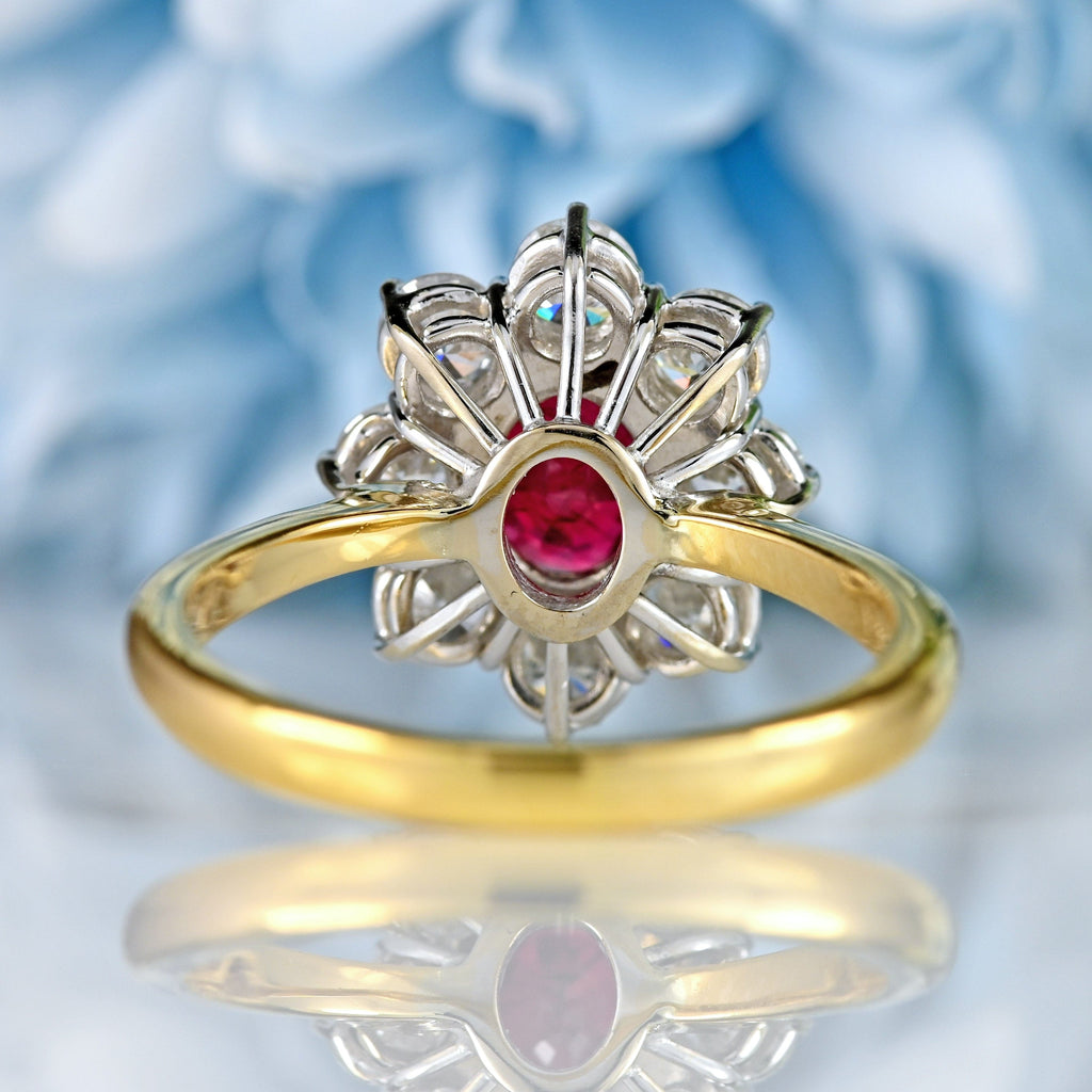Vintage Ruby & Diamond 18ct Gold Cluster Engagement Ring (1.25cts)